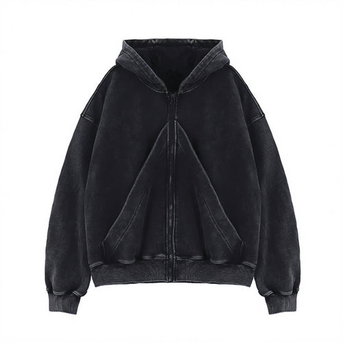 American-style Vintage Washed-and-distressed Cardigan Zip-up Hoodie