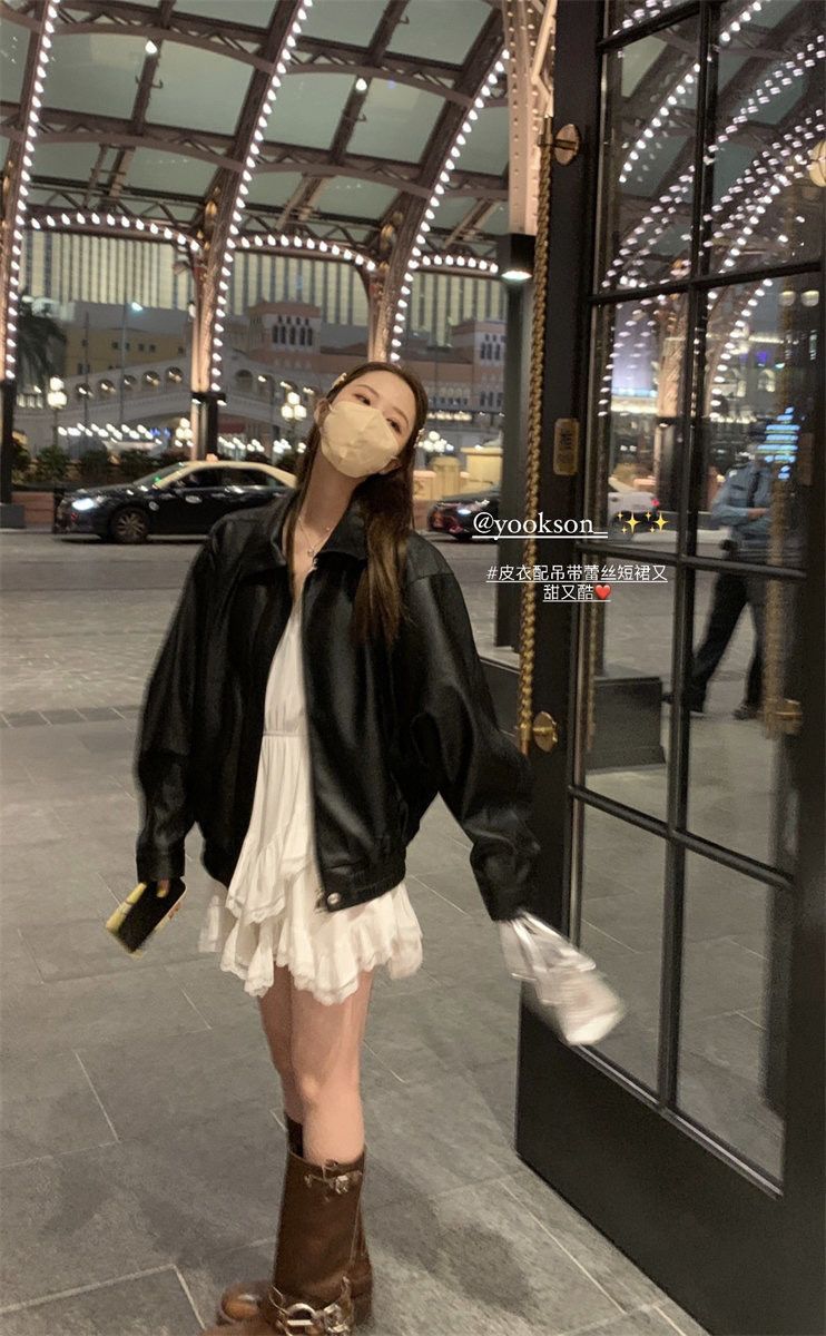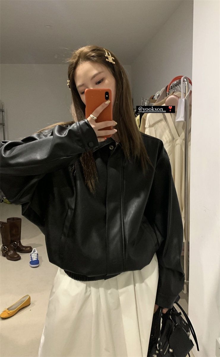 American-style Vintage Leather Jacket Women's Short