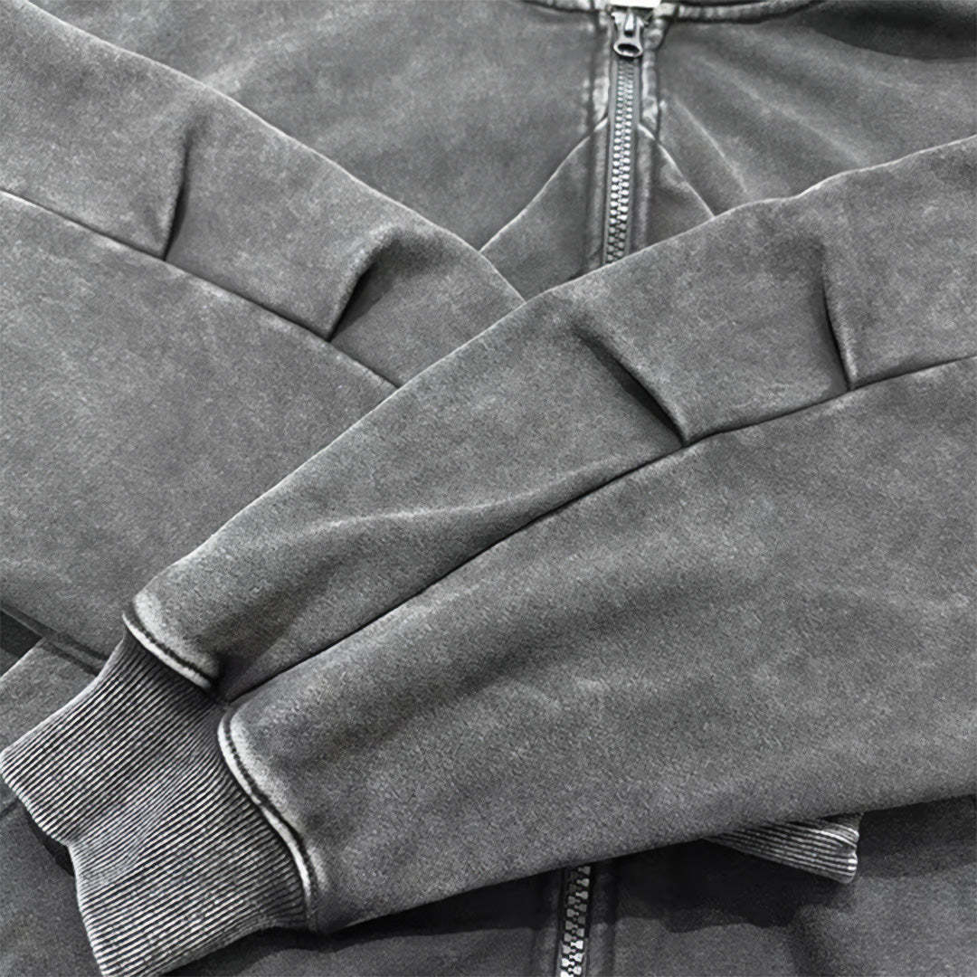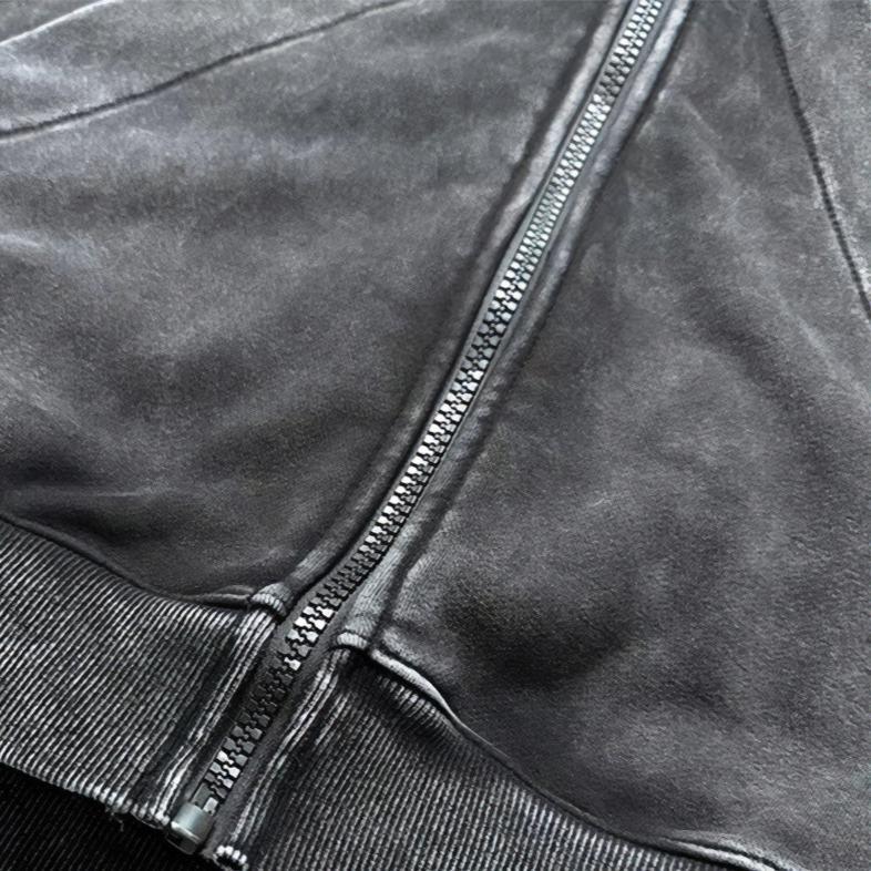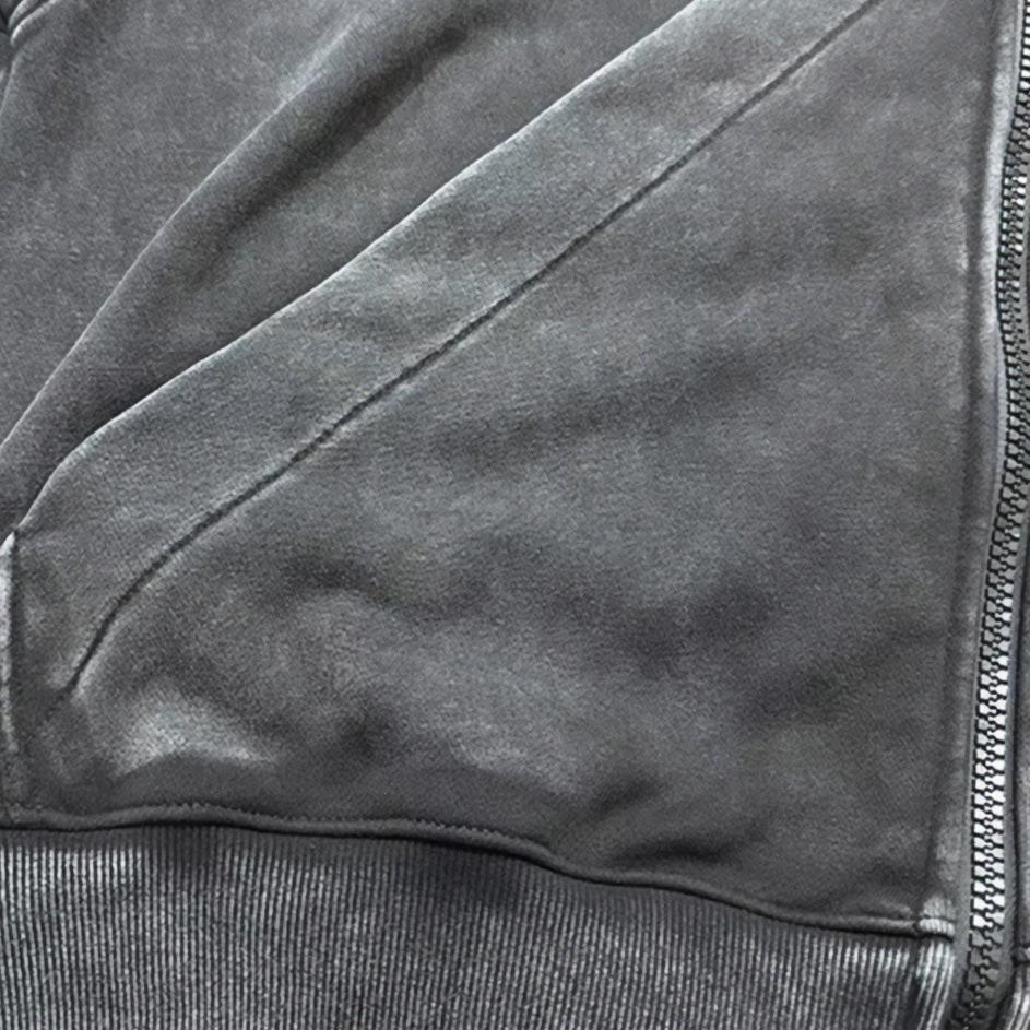 American-style Vintage Washed-and-distressed Cardigan Zip-up Hoodie