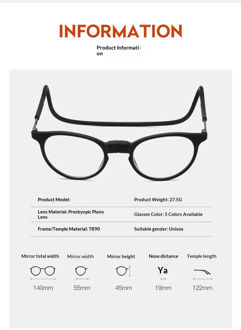Foldable Magnetic-Attachment Neck-Hanging Reading Glasses With Blue-Light Blocking Portable