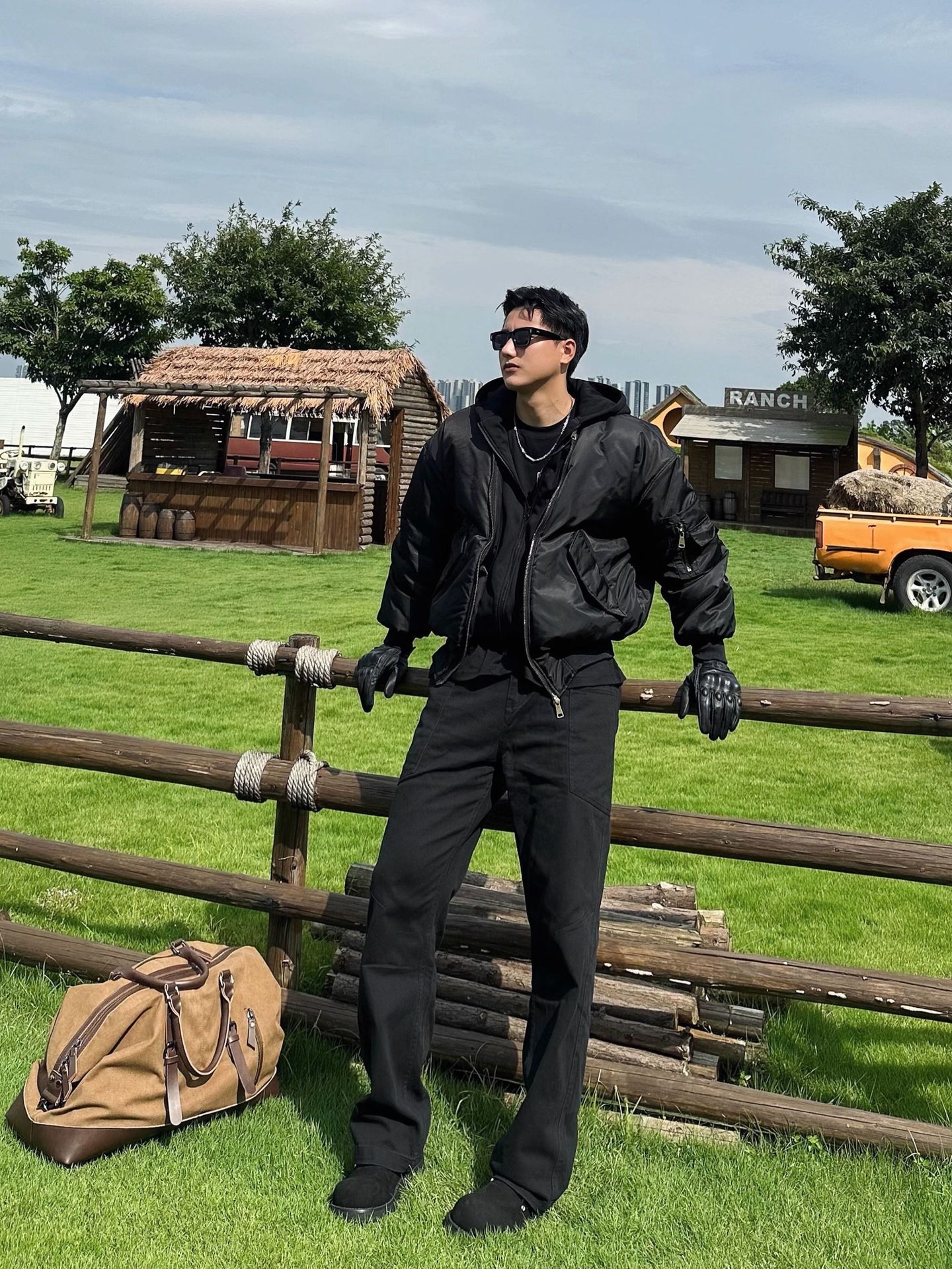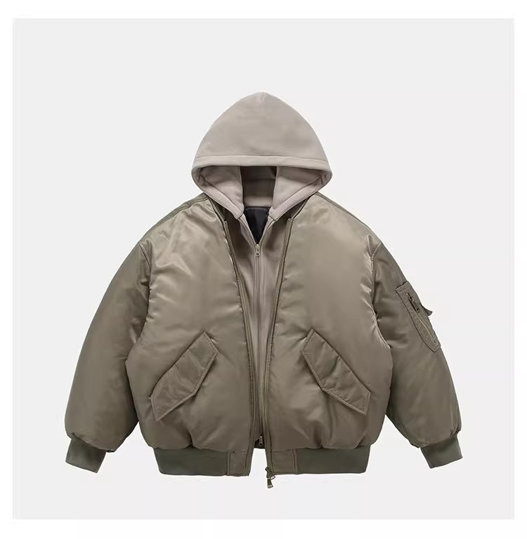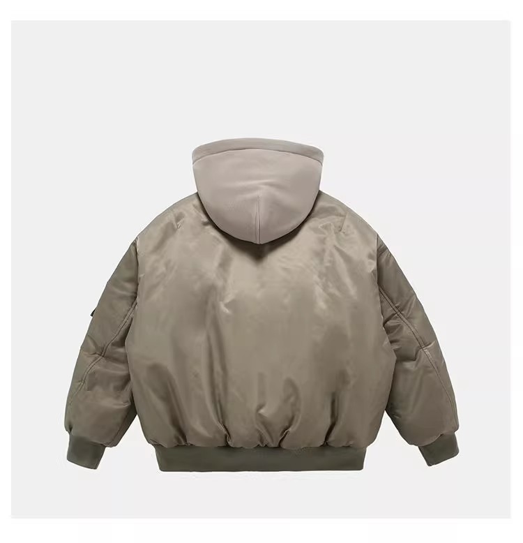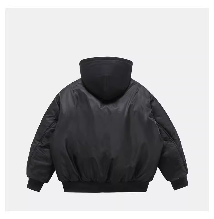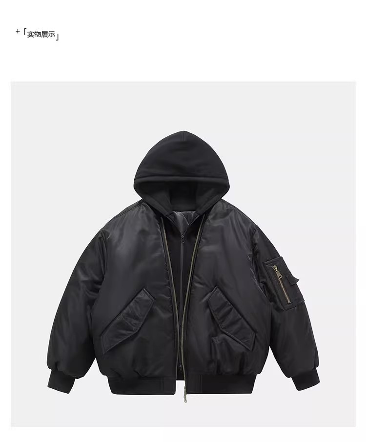 Mens Black Faux Two-Piece Hooded Flight Jacket Padded Coat
