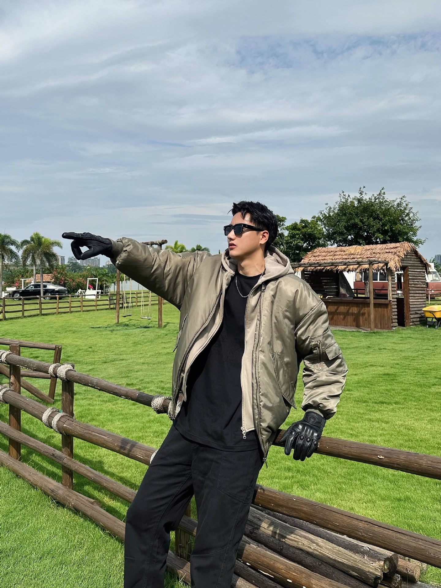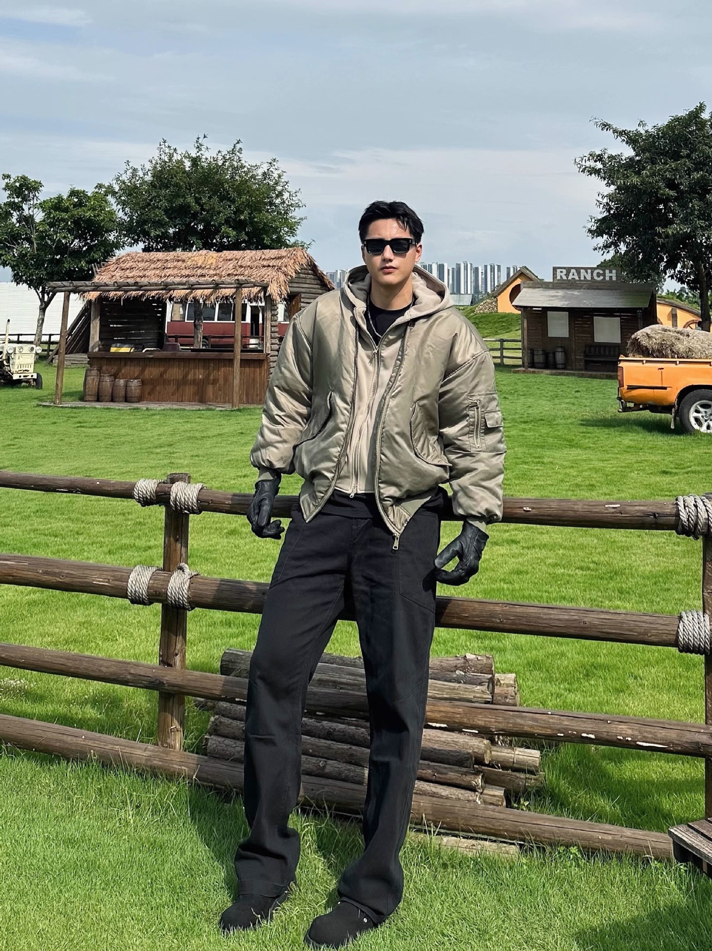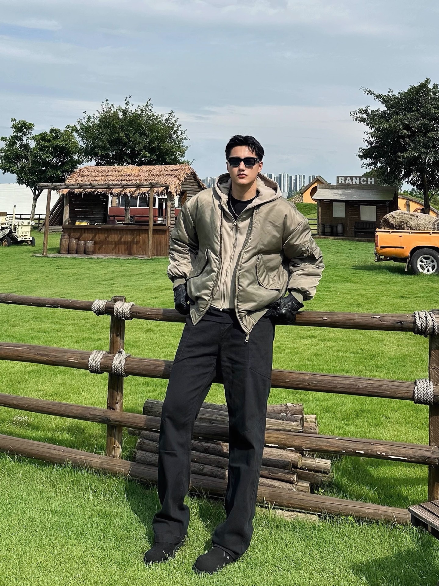 Mens Black Faux Two-Piece Hooded Flight Jacket Padded Coat