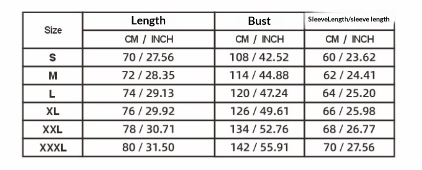 Sizes: S, M, L, XL, XXL, XXXL