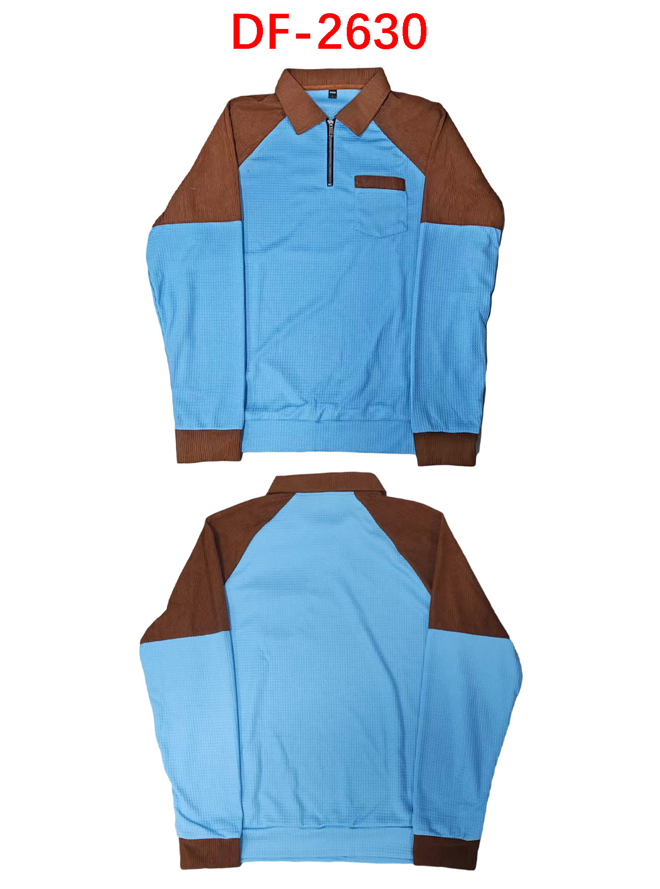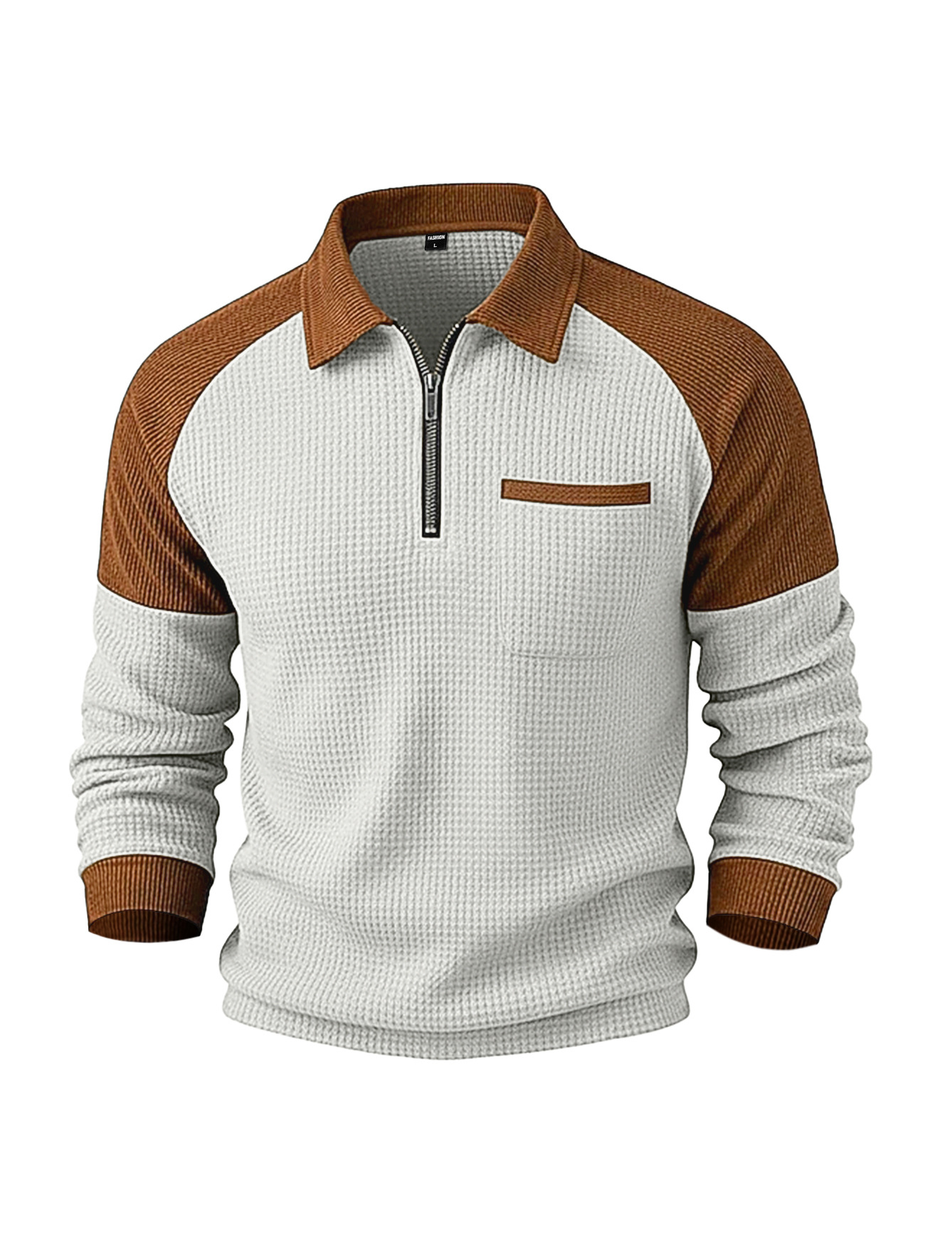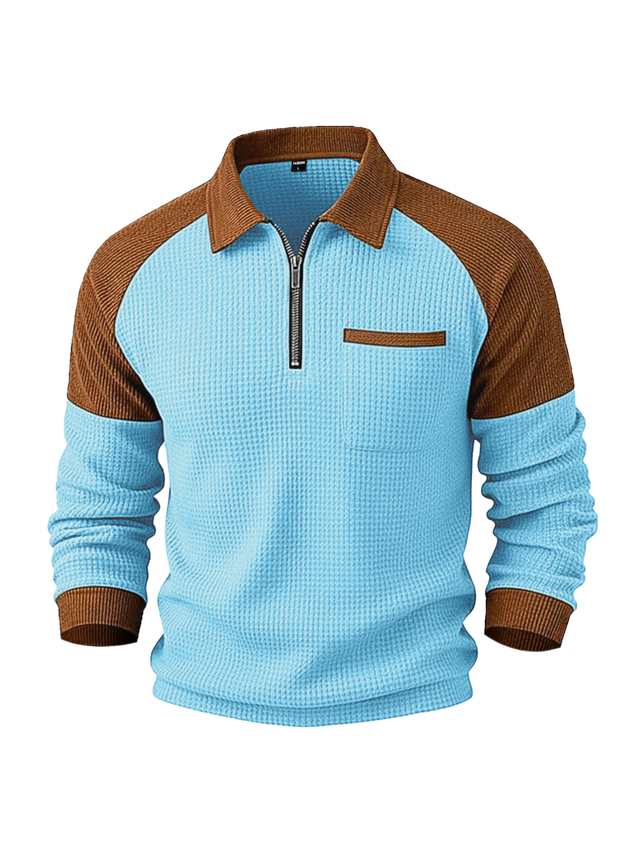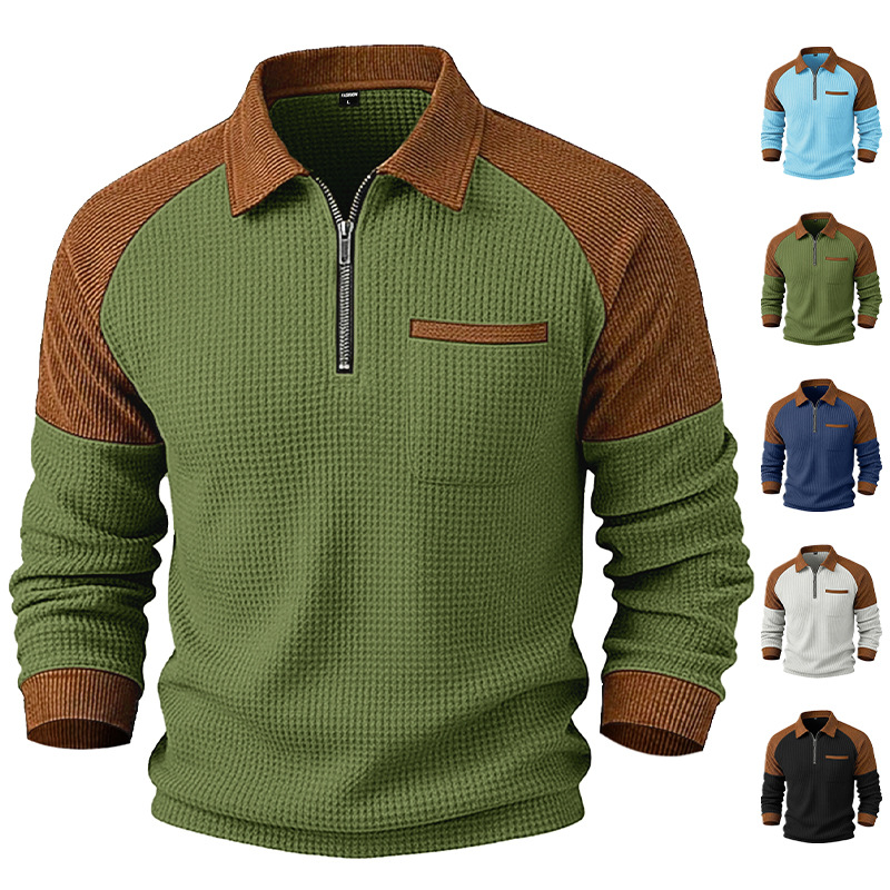 Men's Waffle-Weave Lapel Half-Zip Polo Shirt Top Casual Sweatshirt